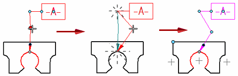 一条注释可以具有多条指引线。注释的端符末端可以指向一个元素,或者放入自由空间中。新指引线的注释末尾必须与注释或者注释上的指引线相连。