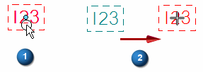 要自由移动没有指引线的注释,如下面显示的标注,请将移动手柄 (1) 拖动到新位置 (2)。还可以抓住边界或边来拖动注释。