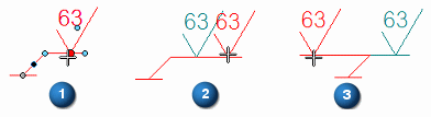 要编辑折线,拖动折线编辑点 (1) 以延长或缩短折线 (2),将注释和折线线翻转到指引线 (3) 的另一侧。