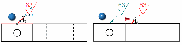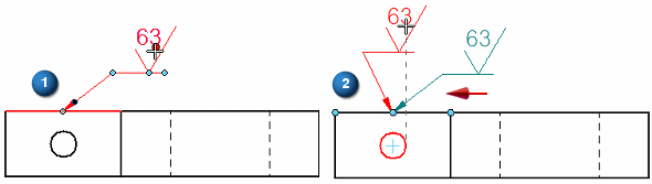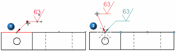 要重新定位元素上的注释,而不更改任何其他元素,请将指引线 (1) 拖动到新位置 (2)。