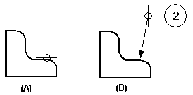 单击要放置指引线端符的位置 (A),然后单击要放置符号标注的位置 (B)。