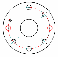 您可以选择一个现有的螺栓孔圆,然后使用“螺栓孔圆”命令条上的“添加/移除元素”选项将缺失的中心标记添加至螺栓孔圆注释中的元素,或从中移除不需要的中心标记。