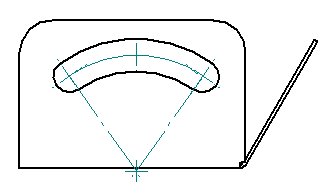 示例:在该槽特征中,中心线、端点和打击点上的中心标记和圆弧投影线的中心是从模型中调入的: