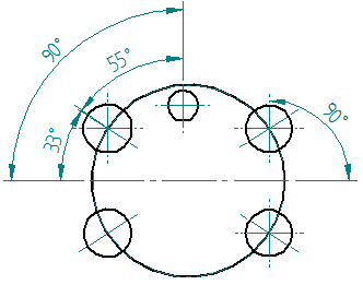 夹角命令添加引用中心线、中心标记和螺栓孔圆注释的尺寸。