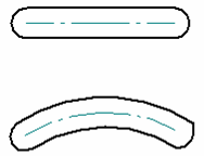 示例:线性和圆弧中心线类型放置于 2D 几何体上: