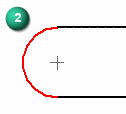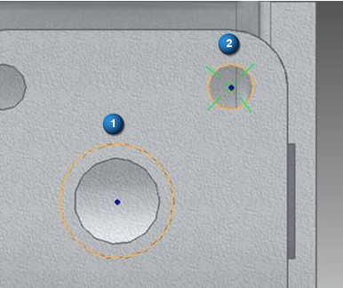 单击圆弧或圆以确定中心标记的中心点 (1)。