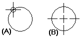 要在单个曲线元素上放置中心标记,请选择“水平/竖直”选项,然后单击元素 (A)。