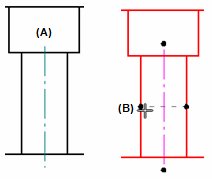 对于用 2 条线放置的中心线 - 可以通过将连接手柄拖动到注释引用的线 (B) 上来重新连接中心线注释 (A)。