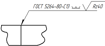 当在制图标准选项卡(创物3D 选项对话框)上设置了 GOST 焊接符号选项时,也可以将表面纹理符号置于焊接符号上。