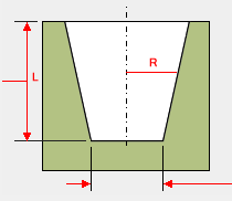 <锥形孔>,锥度比 R:L(其中 1:X)