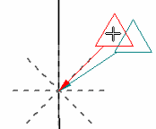 指引线以 0、90、180 和 270 度对齐至水平和竖直方向。它们还可以支持 45 度增量对齐。当您开始移动注释时,将显示以下辅助工具。将注释拖动至虚线上时,将对齐该方向。
