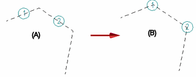 如果将不均匀间距 (A) 改为均匀间距 (B),则会重新排列现有的注释。