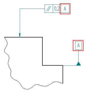 如何使用参考文本的一个简单示例是在基准框和特征控制框之间创建交叉引用。当基准字母更新时,特征控制框也将随之更新。