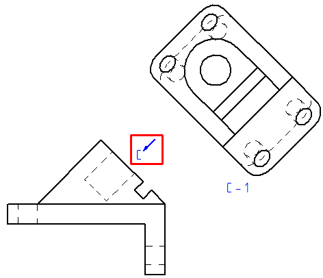 向视图(视图 C)或剖视图 (A-A) 的视图注释标题。