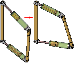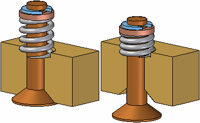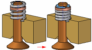 这就使您可将一个可调零件的几个事例放置于装配中,可调零件的每一个事例会与该零件事例当前参数值相符。例如,弹簧的一个事例显示为压缩,而弹簧的另一个事例显示为未压缩。
