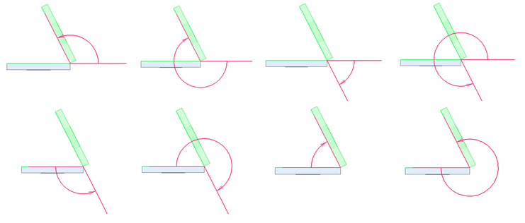 每个选项可以执行的操作都是相同的。但是在打开角度命令条后,只能应用角度关系。关系类型不可更改(请参阅使用命令条上的角度特征)。