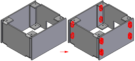 可以选择一个子装配作为零件选择集来修改,且将修改所有与该特征相交的零件。如果零件稍后添加到子装配,新零件便不再添加到该特征范围。如果要新零件参与到特征中,则必须编辑特征并返回至选择零件步骤,选择要应用该特征的新零件。