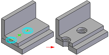 在装配中构造孔。您可指定要从中除料的零件。