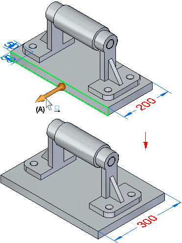 在选择选项菜单中将选择工具准则设置为面优先级之后,在装配中操作时可以执行以下类型的同步零件编辑操作: