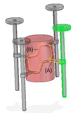 下图显示了凸轮的相切面闭环 (A) 与单个从动件 (B) 之间的凸轮关系。