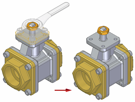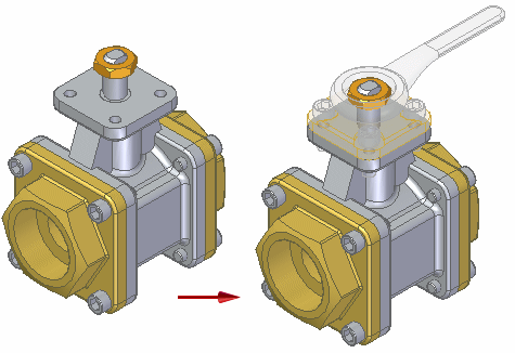 在原位激活零件或子装配以进行更改时,仍会显示余下零件或子装配,但它们会更改颜色以便更容易注意到正在编辑的零件。在编辑零件时,可使用视图选项卡上的隐藏上一级命令来隐藏其他零件或子装配。