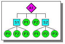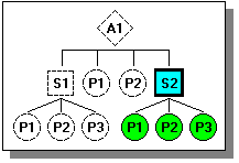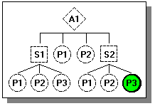 然后,如果在子装配 S2 中原位激活了零件 P3,还可以使用隐藏上一级命令来隐藏子装配 S2 中的余下零件。结果类似于以下图示。