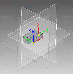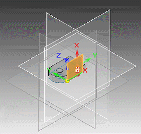 原始三重轴现在显示在您指定的零件构造平面上,准备好让您开始绘制特征和草图。
