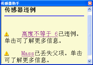 将显示“传感器”窗格,将以细的红色边框标识与违例或警告关联的传感器。