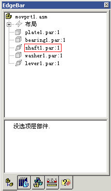 请注意,SHAFT1.PAR 尚未完全定位。只能移动固定的或尚未完全定位的零件。如果零件已完全定位,则可使用快捷菜单中的“抑制”命令来临时抑制关系。