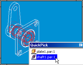 在应用程序窗口中,使用“快速选取”来选择 SHAFT1.PAR。在“拖动部件”命令条上,设置“移动”选项。