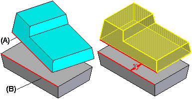 此外还可以在待放置零件的线性边 (A) 与装配中已有零件的线性边 (B) 之间应用平行关系。