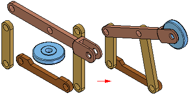 可使用装配命令来互相参照定位一组零件,而无需完全约束按顺序排列的序列中的每个零件。这种类型的工作流可使一组互相关联的零件的定位任务(如构建机构)更加简单。