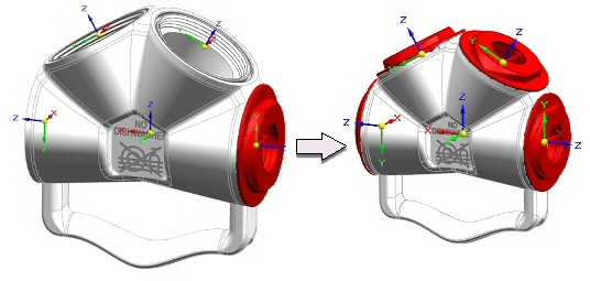 您可以使用坐标系来复制和定位装配部件。为此,请在选择自步骤中选择坐标系。然后可以使用选择至步骤,通过将坐标系与先前创建的坐标系匹配来定向部件。使用坐标系复制部件时,选择所有匹配事例选项不可用。