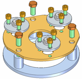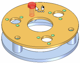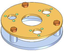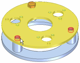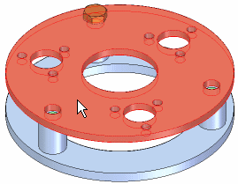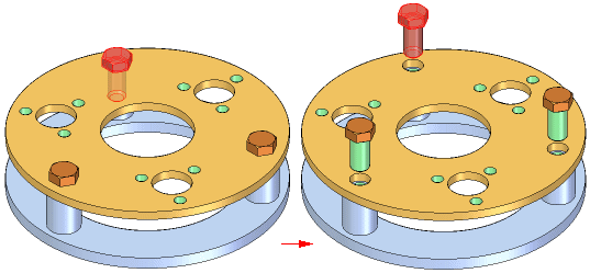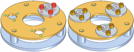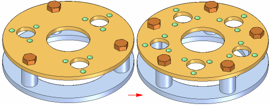 如果更改包含特征阵列的零件设计,那么装配中的零件阵列将会更新。例如,如果您增加阵列特征中孔数,则系统会将附加螺栓添加至装配的零件阵列中。