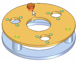 当您删除阵列中的原始零件时,阵列的所有零件也会被删除。不可删除零件阵列中的单个阵列项,但可以抑制。例如,一个阵列上有 24 个螺栓,出于设计考虑,要求一个螺栓比其余的短。