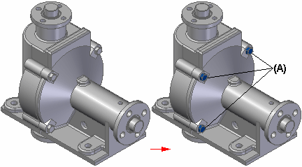 无论使用哪种方法选择零件,它们都使用“排除的零件”颜色 (A) 显示,以表明它们将不会显示在简化表示中。如果要重新显示排除的零件,可以按住 CTRL 键然后重新选择它。