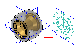 “定向步骤”定义了虚拟部件的原点位置,还定义了发布虚拟部件时,2D 草图形所处的参考平面。您可以指定将图形放置在三个基本参考平面中的一个平面上。
