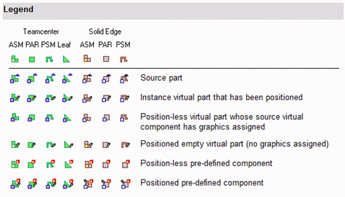 “路径查找器”和虚拟部件结构编辑器对话框中的符号反映了装配中虚拟部件的当前状态。
