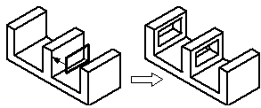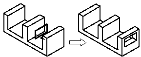 “贯通”是拉伸和除料特征的范围选项之一。下列示例显示将“贯通”用于除料的效果。