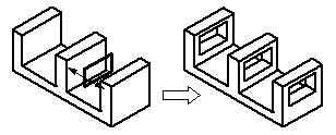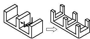 下一幅图显示类似的情况,不同之处在于轮廓顶部已保持开放。注意,轮廓的两端进行延伸,使特征切除了零件的上表面。