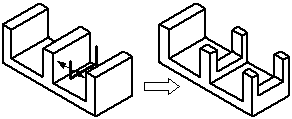 下一幅图显示类似的情况,不同之处在于轮廓顶部已保持开放。注意,轮廓的两端进行延伸,使特征切除了零件的上表面。