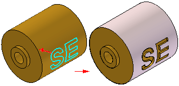 通过拉伸位于零件面上的封闭曲线构造垂直于该面的拉伸。使用文本轮廓或其他草图元素在非平整面构建特征时,此命令非常有用。