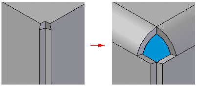 如果需要,此命令则使用“选项”对话框中指定的折弯半径对模型边进行倒圆。在某些情况下(比如存在包含倒圆和尖角的部分弯边或内部弯边),此命令将折弯止裂口添加到模型中以便能够成功地将模型转换为钣金件。