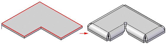 指定您想对构造弯边的源面应用折弯止裂口。设置此选项后,还可以指定折弯止裂口是圆形的还是正方形的,以及折弯止裂口是仅应用于与折弯相邻的材料,还是应用于整个面。