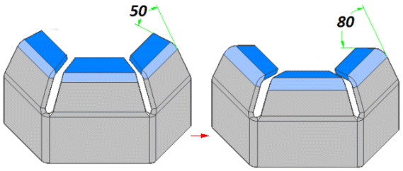 组成轮廓弯边的元素是相互关联的,以便弯边之间的折弯角、折弯半径和方向始终保持一致。换句话说,如果更改折弯角,则轮廓弯边中的所有弯边都将更新以反映更改。