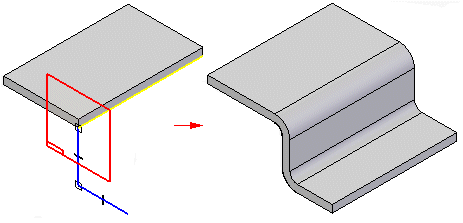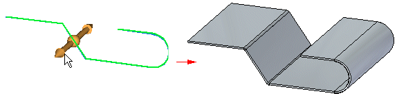 借助“轮廓弯边”命令,可以构造具有多个使用开放轮廓的折弯和平直的特征。