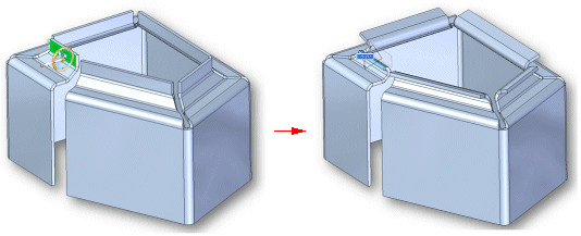轮廓弯边中的每个平板都如同阵列的一个实例一样。轮廓弯边中折弯或平板的任何更改都将应用到弯边中的所有成员。