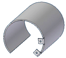 在构造轮廓弯边之后,可以使用“展开”命令展开它。可以对压平的零件添加特征(例如,孔阵列),然后使用“重新折弯”命令重新卷起该零件。然后,可以通过在“零件”环境中添加拉伸来填充小缝隙。