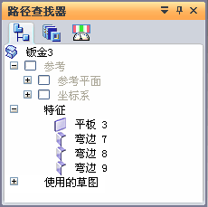 在顺序建模环境中创建简单轮廓弯边后,它在“路径查找器”中显示为轮廓弯边。