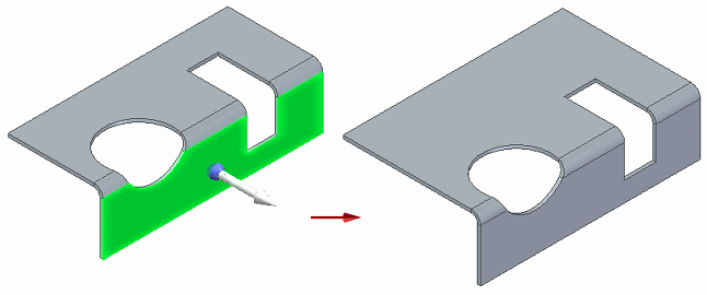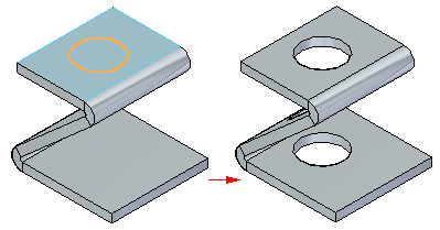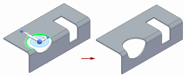 可以跨折弯移动圆柱除料并且除料将保持其形状。
